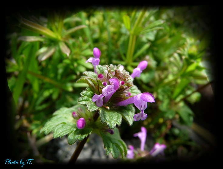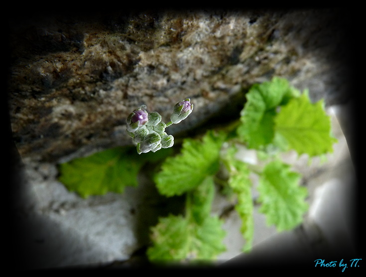 從地上的牆縫中掙脫出鮮活生命力的小紫花 ↓,也出落得好靈巧、好美~
