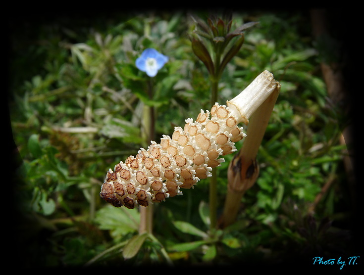 小瓢蟲說:這株折彎了的小植物, 有個可愛的名字叫「土筆 つくし」是可食用的野菜喔↓