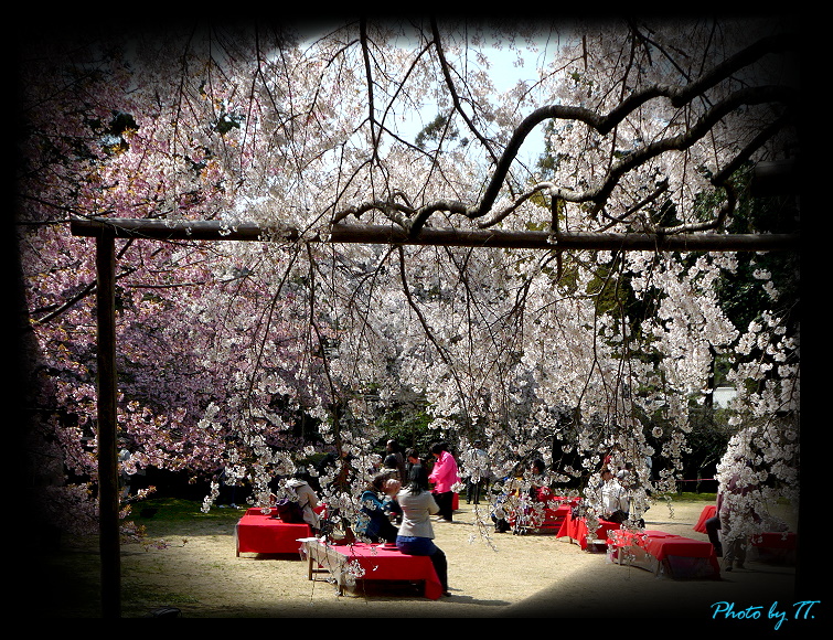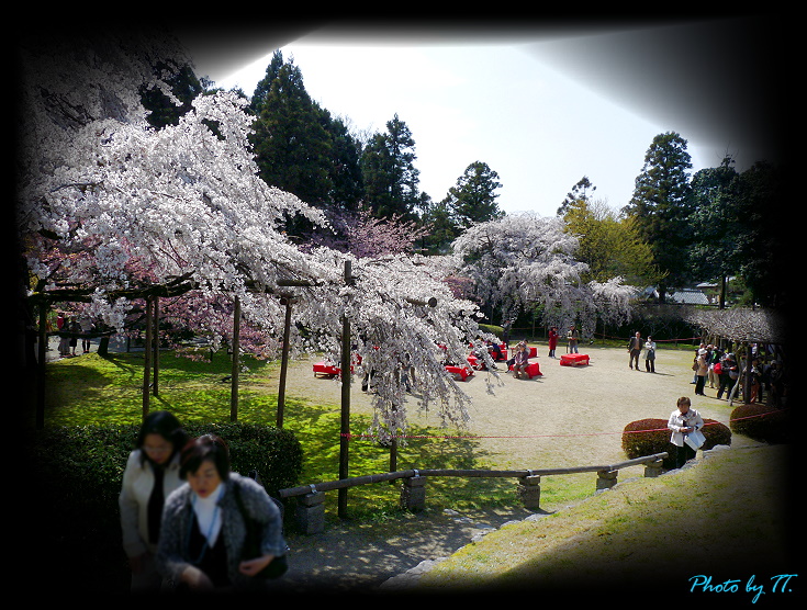 那~ 偌大的庭園裡不僅是櫻花遍佈、漫天飛舞 ~~
