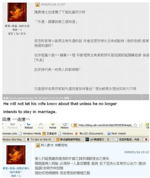 葡萄+紫晶<義式夜難眠 於 2009/01/21 23:45回覆 - 3樓. 李深耕2009/01/20 00:03男女是平等的!? 沒有誰怕誰!?