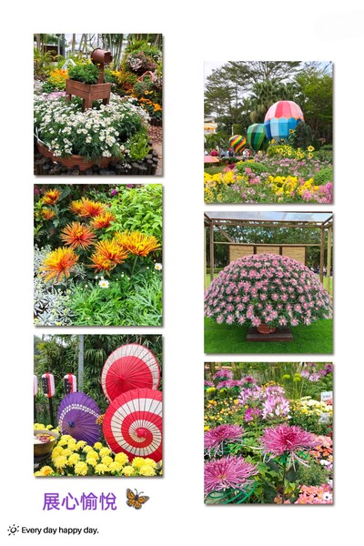 這回士林菊花展, 鋪陳各式各樣五花十色的品種穿插有緻成一個個小花園景色, 極具用心的展現各種花卉的繽紛色彩.