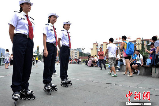 “成都女城管踩轮滑执勤, 柔性劝导不文明行为”