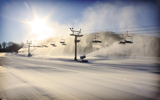 還沒下! 幾個雪場在努力搞人造雪。 (圖)