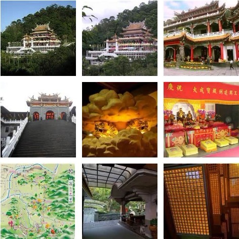 循著仙公廟後的左側小徑,可到達大雄寶殿。2、3樓是正殿,供奉釋迦牟尼佛,其中有一尊是泰國巴博元帥惠贈的泰國國寶-釋迦牟尼金佛,是參照印度科達時代的印度佛像形態,由九種金屬礦石精工鑄成,是該廟最特別的一尊佛像。從仙公廟後的右側小徑,順著景色怡人的斜坡廊道直走,就可來到凌霄寶殿。天兵天將護衛在門簷上,殿內有許多神佛,顯得莊嚴肅穆。沿寶殿左側走道過去,是指南觀光樂園,視野遼闊。旁邊有露營場,兩地之間有山路通孔子殿,殿外有白牆,牆上有孔子和弟子周遊列國的浮雕,並環繞一雙麒麟,象徵孔子的精神,就像鳳毛麟角般珍貴。