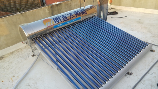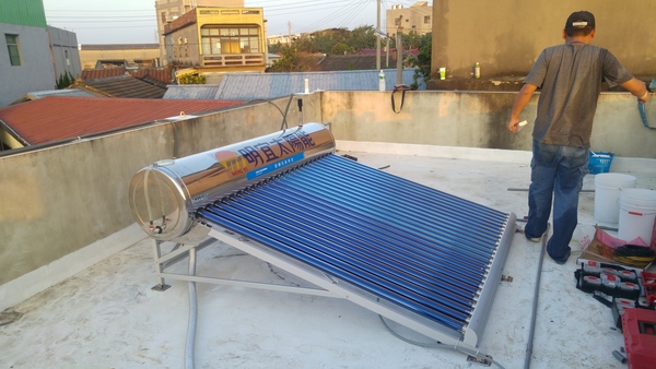 經過了一天的施工 順利的將張先生家的真空管太陽能熱水器