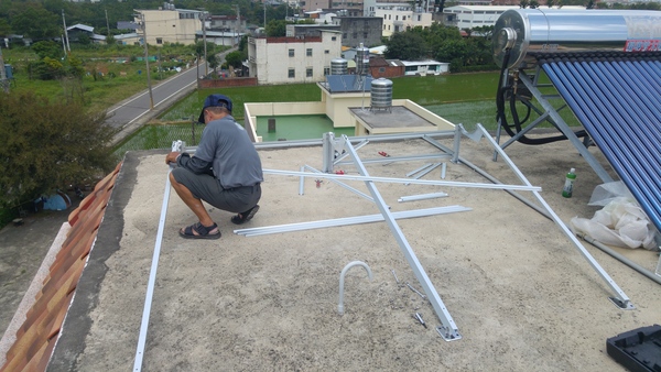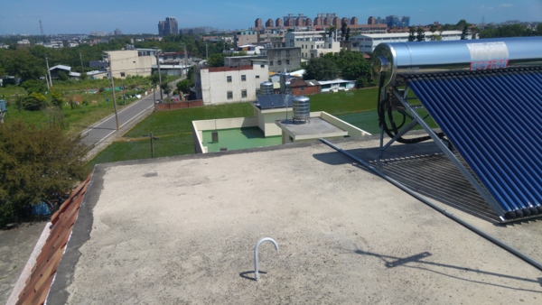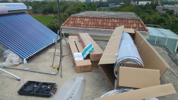 屋頂上隔壁鄰居也是安裝它牌的真空管太陽能熱水器