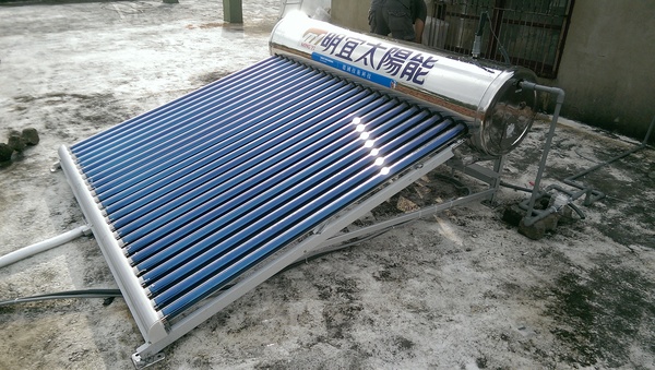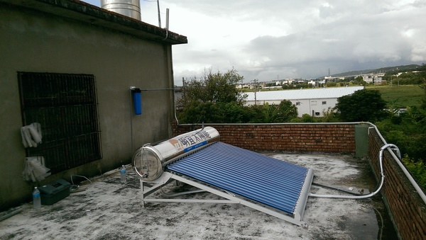 於是本公司幫忙規劃傅先生舊有的電熱水器跟真空管太陽能熱水器
