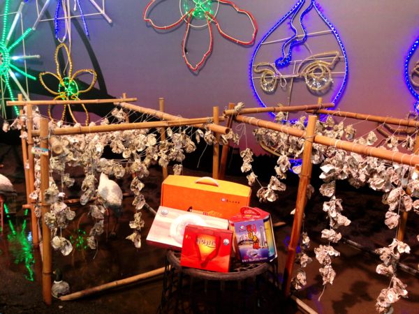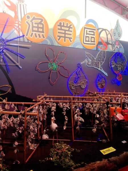 彰化展館內,直接把濱海常見的蚵架搬進室內,展現漁村風華,