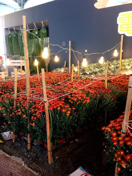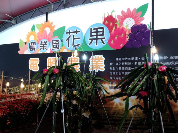 在彰化田尾花壇常見的點著燈泡的菊花田,以及火龍果田,