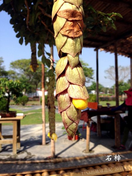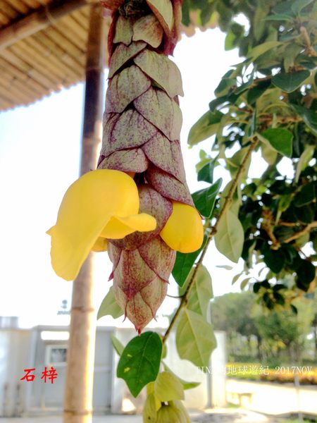 上網查了「石梓」,觀賞植物~菲律賓石梓,屬常綠藤本植物,