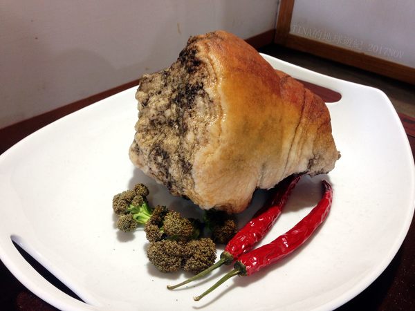 瞧~~這爐子上細火慢烤的五花肉,是不是光看就令人留下口水來?