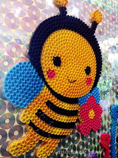 還有用塑膠瓶蓋及光碟片作成的小蜜蜂,