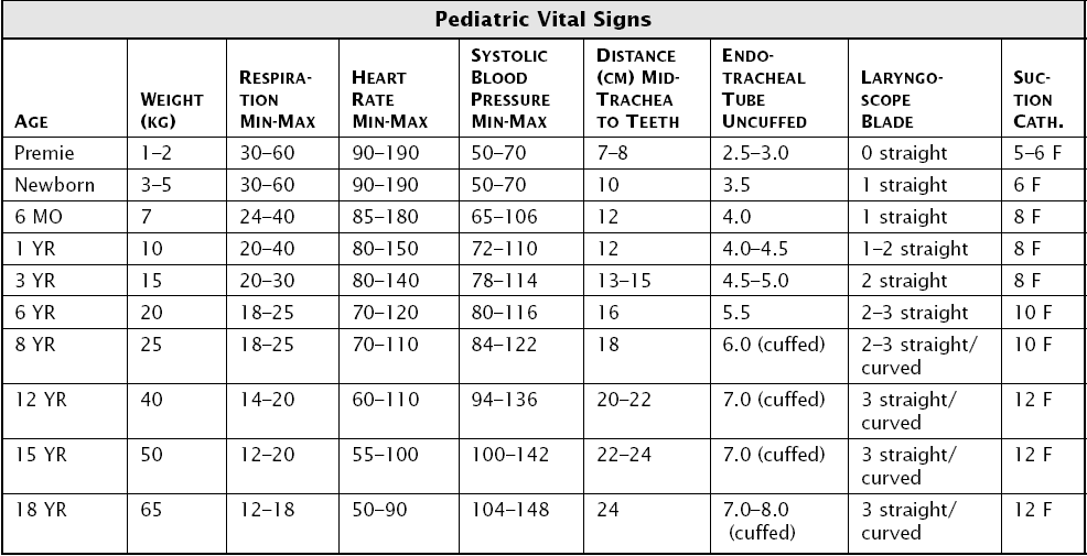 小兒之 vital signs and ETT sizes