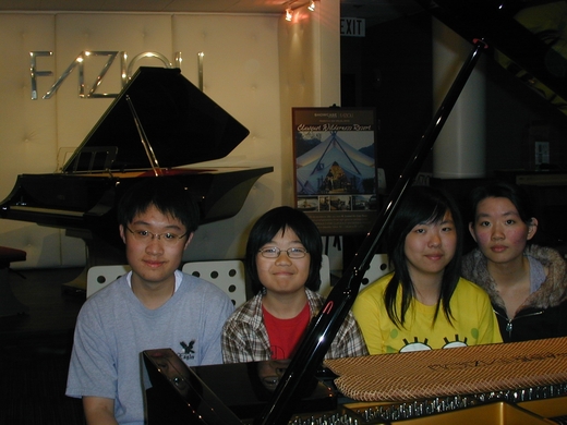 圖一是嘎嘎和他的夥伴 借用 Fazioli 的展示琴練習八手聯彈