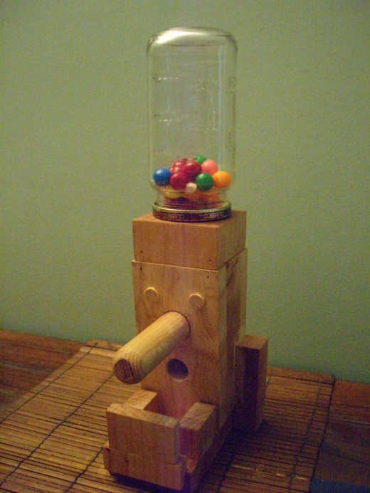 Scott 畫了藍圖 他要做的是一個小木偶造型 類似扭蛋機的機器 旋扭轉開後 會掉出大顆的糖果