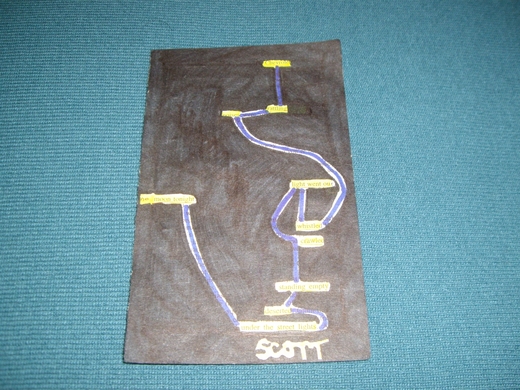 我看他拿一張塗得亂七八糟的紙 稱"作業" 才好奇探問
