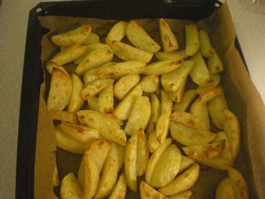 這個國家的主食是馬鈴薯。雖然先生什麼都吃﹐但我知道他還是最愛吃馬鈴薯。馬鈴薯可以水煮﹐也可以加奶油牛奶壓成泥。也可以切細粒加其他的料照炒飯的方式炒成炒雜碎馬鈴薯。也可以烤馬鈴薯派。但我最得意的馬鈴薯菜式卻是香烤馬鈴薯瓣。簡單快速﹐很適合我這種懶人。