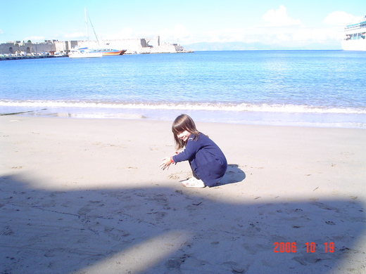 不管如何,有了在雅典的經驗後,我們可說是導遊的模範小跟班,緊緊地跟在她的後面,不敢離散。這個導遊小姐很漂亮,是羅德島本地人。很以希臘為榮。也因此,對土耳其及塞普勒斯有一種天生就是不對頭看不慣的天性。羅德島的地理位置比較敏感,離這兩個國家很近,以前一定常常有交戰的經驗,因此她會有這種『看不慣土耳其人』的天性,對我們台灣人來說,應該是很容易了解的。 那天在島上天氣很好,氣溫高達攝式25度,陽光普照,讓我們有一種“這才是地中海該有的天氣”的感覺。據說到羅德島渡假的瑞典人很多,就好像台灣人喜歡去普吉島一樣吧!我想陽光普照應該是很大的原因。