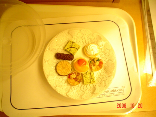 下圖二 房間服務員Carols送的點心一盤. 全都進了老爺的胃去了.