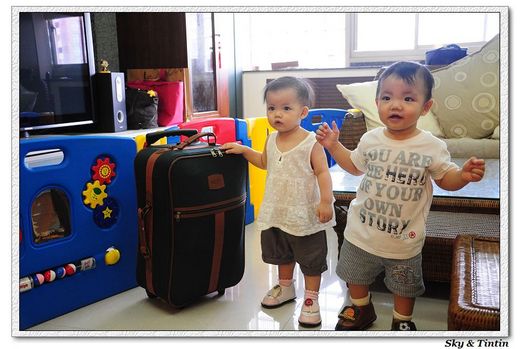 準備出發囉...第一次要出門旅行,看我們跟行李箱來個合照~~