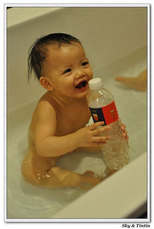 最快樂的事...莫過於晚上爸爸放水讓我們在浴缸裏玩囉...玩到都不願意起來了!!