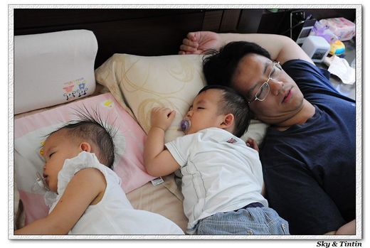 但我家老爺也絕了...每當我半夜起身,到外面叫醒他之後,他的第一反應都是跟我說晚安,然後.........開始倒轉!! 轉回他還有意識的地方,再開始繼續看~~!! 他的平均進房間上床睡覺的時間是3:00 am,但7:15 am一定會起床去泡奶,從沒誤了小朋友的早餐!!
