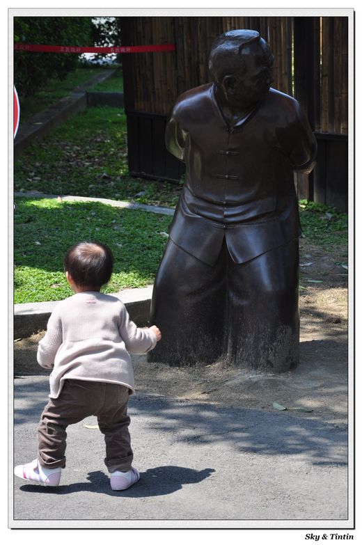 PS.下圖一,妹妹在花博養生館,學雕像的老公公走路。