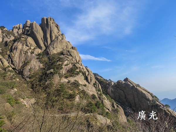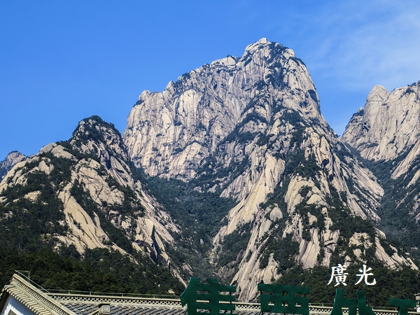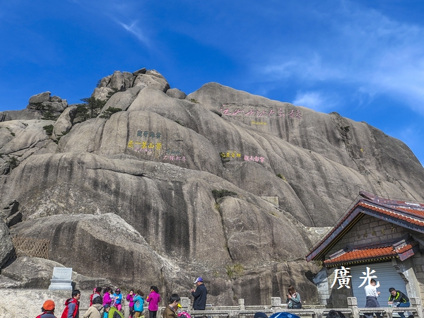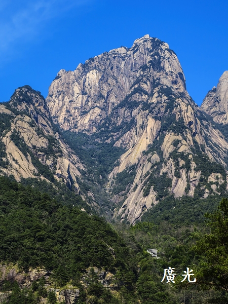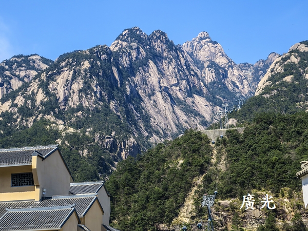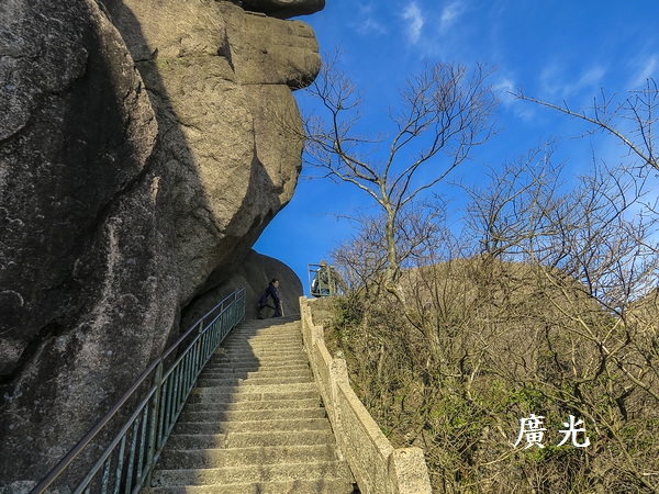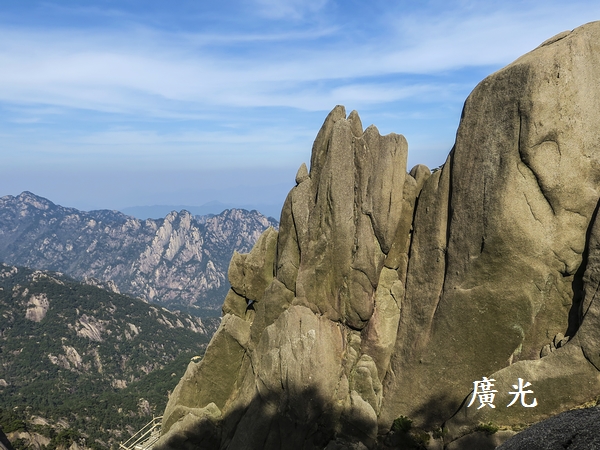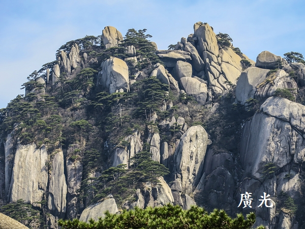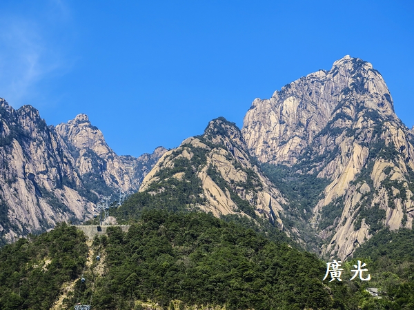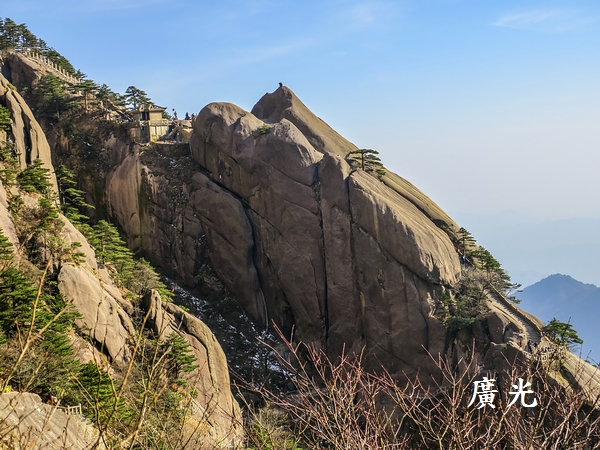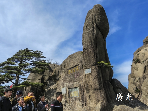 站在鰲魚峰上,對面就是位在黃山前山與後山的交界點上的光明頂啦,有團員吆喝著要直上光明頂,看明教教主張無忌在不在家。其實山頂上的建築是黃山氣象雷達站。