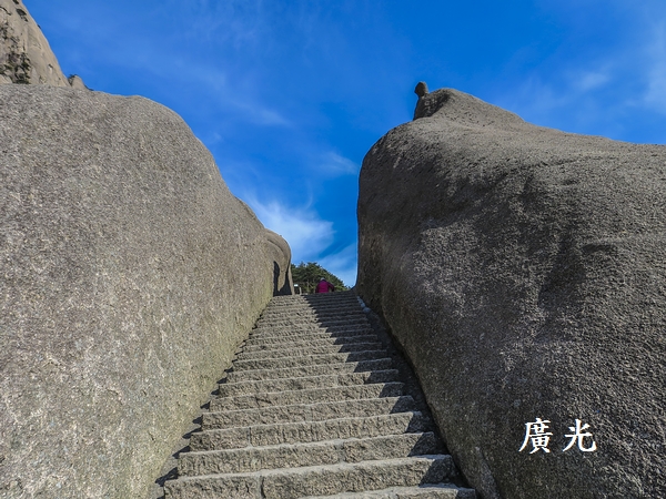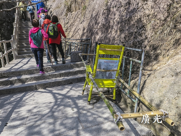 從玉屏纜車站到迎客松間短短的幾百公尺,起起伏伏的落差就已經是對體力的考驗了。