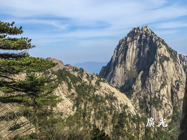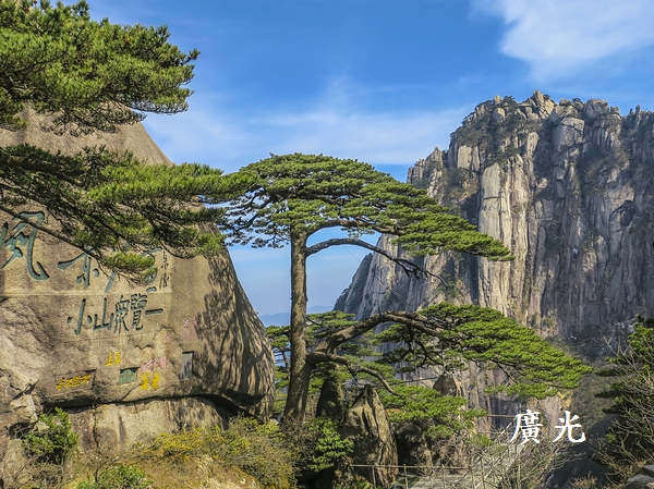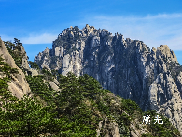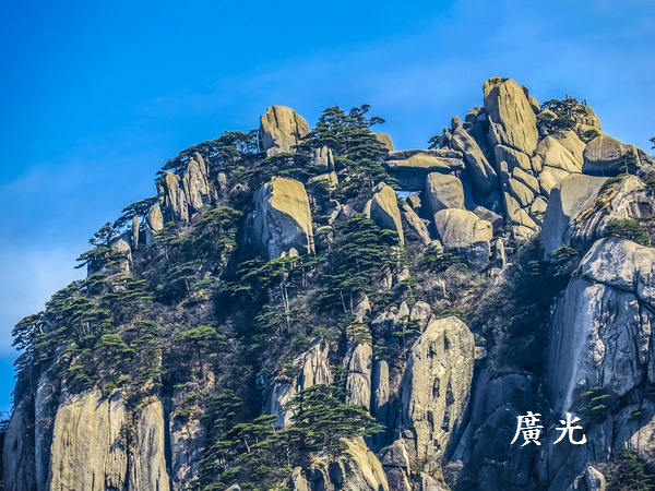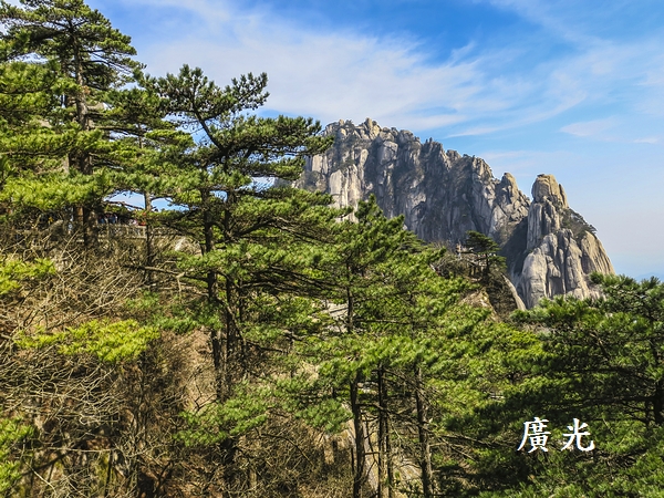 簡直像是張大千國畫中的山頭,活脫脫的就出現在眼前。那山、那石、那岩石線條、那岩縫間的蒼松,這就是黃山呀!