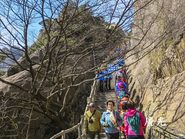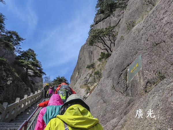 黃山上山路起伏大,「走路不拍照,拍照不走路」,這是導遊上山前一再交代上黃山的安全守則,但是對好攝的我而言真的很難做到,只有自己小心再小心了。