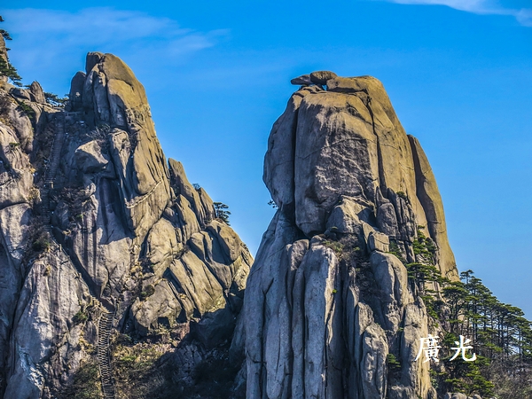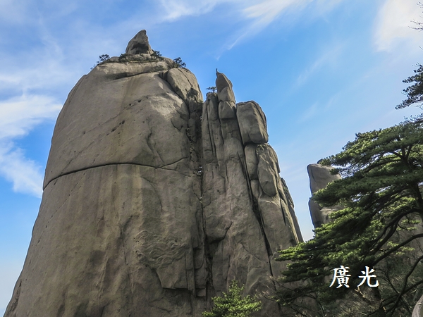 而黃山的奇岩之多,也讓人大開眼界。例如這一座天都峰旁的小山峰。