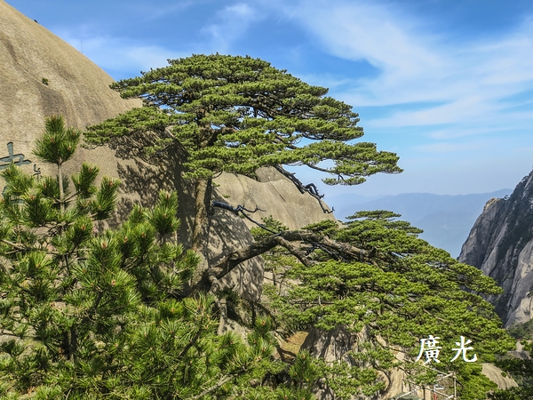 百步雲梯的一個角落,陡峭的山徑旁一棵古松矗立在岩縫中,笑看熙來人往的遊客,可是怎麼經過這裡的遊客都在喘著大氣呢?