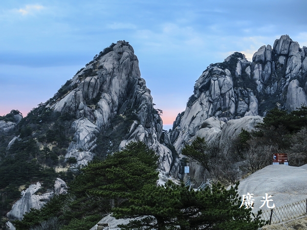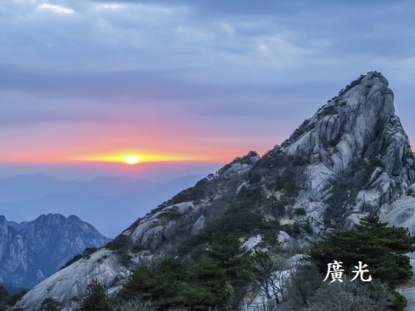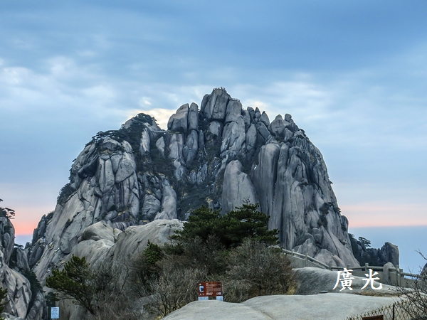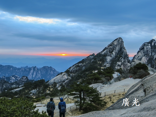105.0329日,黃山之行的第二天,前一天傍晚在光明頂山下的小山頭上欣賞夕陽時,就發現對面的鰲魚峰有人在觀賞夕陽,心想從那一個角度向後轉觀賞日出,可以蓮花峰為前景,景色應該比上光明頂看日出還要好。
