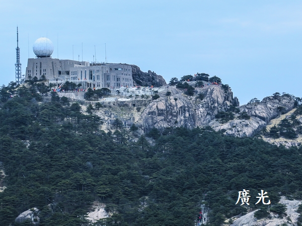 日出後,對面光明頂上的賞日出人潮開始撤離。