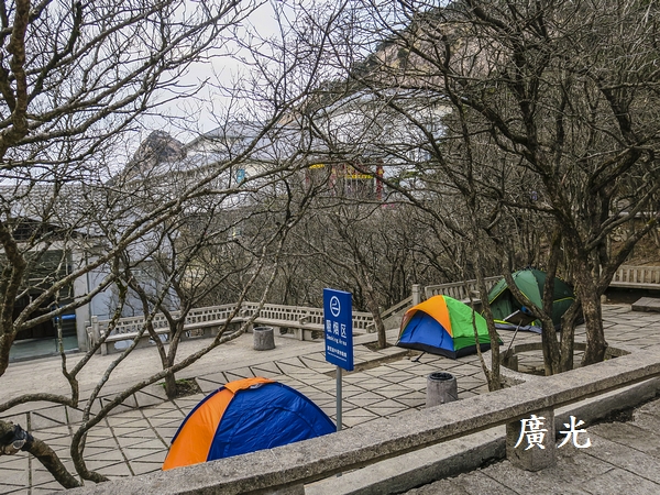 顯然都是年輕人自己揹著帳篷上山來過夜的,入夜之後搭起來天明就撤收,免得被驅趕。甚至昨夜賓館的大廳裡還有十幾個年輕人窩在沙發上過夜,讓我十分羨慕他們的活力與勇氣。