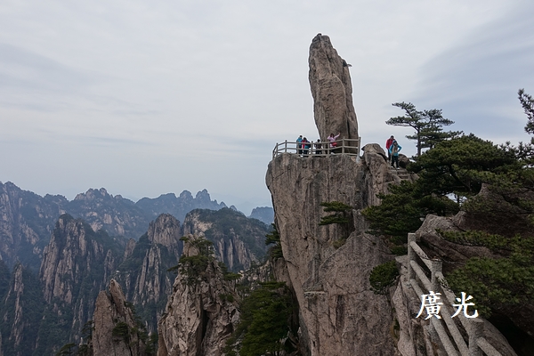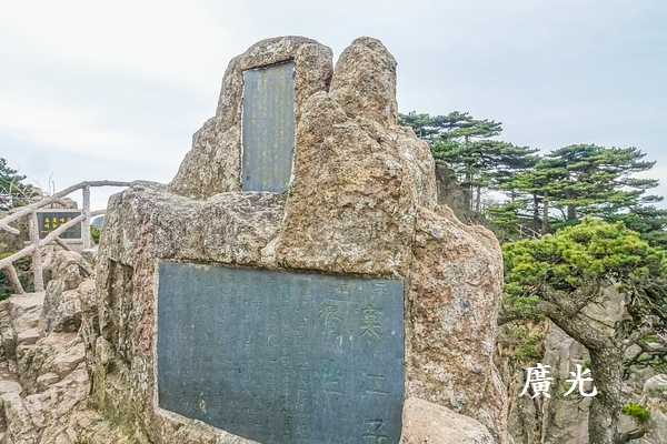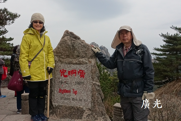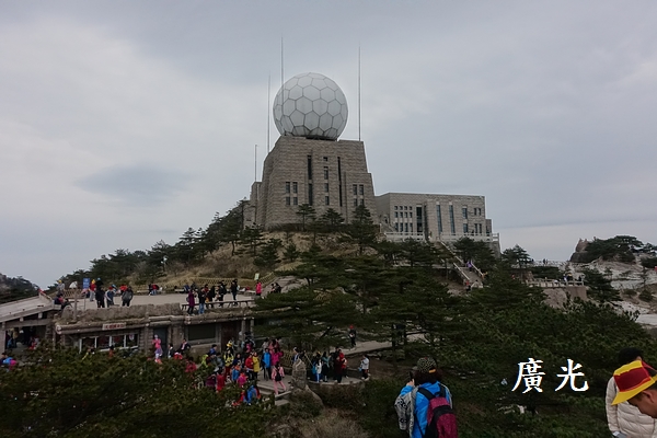 光明頂所在的山頭是分隔黃山前山與後山的中心點,分別來自前山與後山的遊客在此交會,所以顯得特別的熱鬧,這一塊光明頂的石碑是熱門的拍照點,想拍照還得排半天隊。