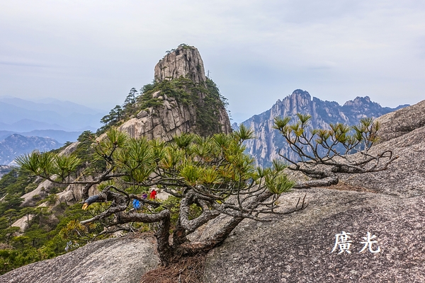 始信峰周邊分布著許多黄山名松,如:接引松、龍爪松、卧龍松、探海松等,依據每一顆松的型態而命名,各團導遊們用大聲公聲嘶力竭地介紹每一棵松樹,我卻喜歡離人群遠遠的,靜靜地欣賞奇松的姿態之美。