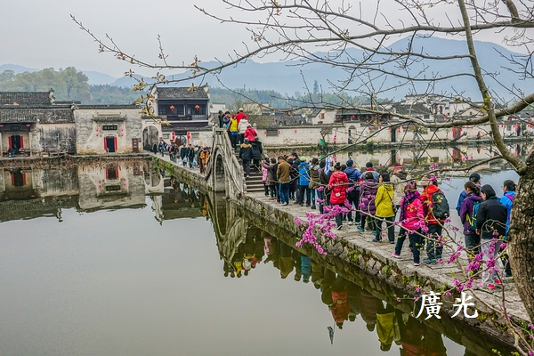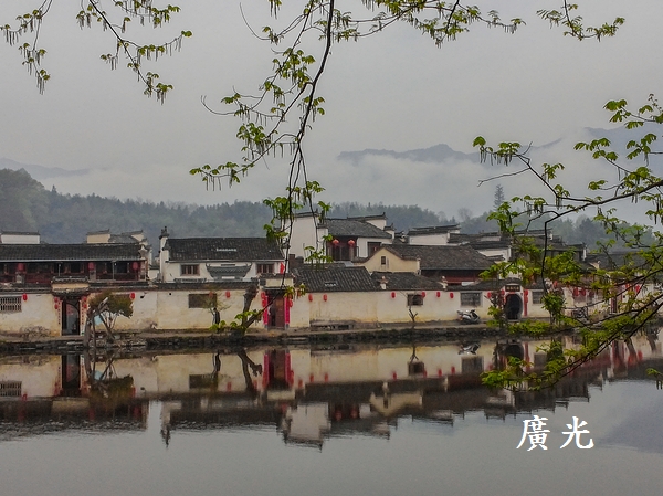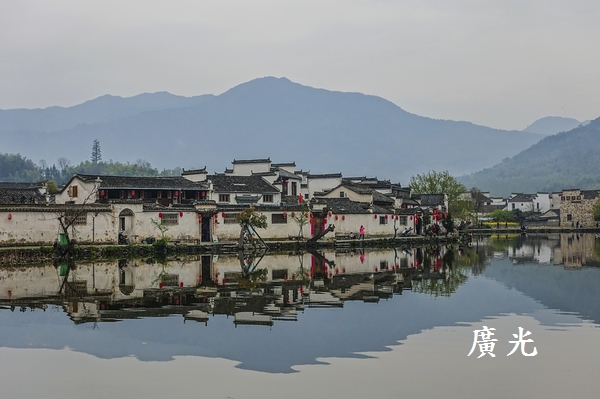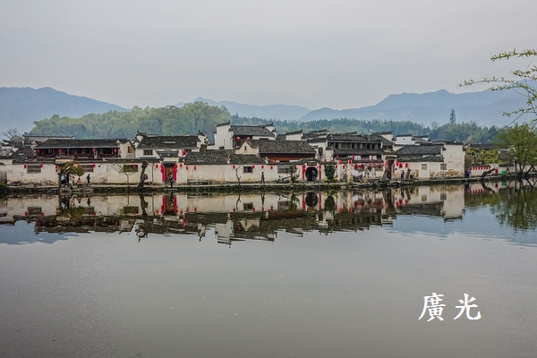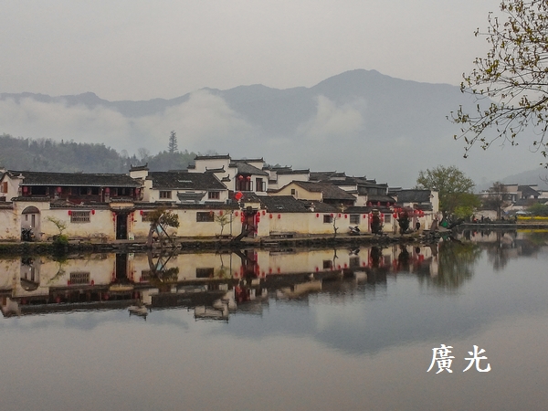 被鏡中煙雨濛濛的黃山,加上倒映在湖中的灰式建築,這景色正是宏村最迷人之處。