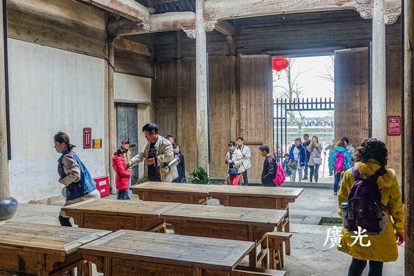 隨著導覽員的腳步棒訪了村中的幾個主要景點與建築。明末宏村人在南湖畔建了六所私塾,稱為「依湖六院」;到了清嘉慶年間將六院合併建成一所規模極大的單一私塾,取名「以文家塾」,又稱『南湖書院』,為典型徽州書院結構,書院由志道堂、文昌祠、啟蒙閣、會文閣、望湖樓和祇園組成。