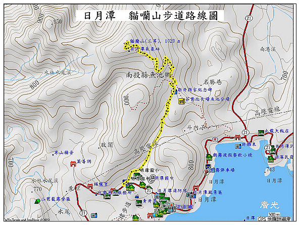 連續去了日月潭幾次,飽覽水色山光之際,總是要與大量的大陸觀光客擠在一塊,感覺旅遊的品質受到了影響。這一次去日月潭除了拍攝晨昏美景之外,特別想找一個不同的景點,既可以俯瞰日月潭美景,又可以避開陸客人潮,還可以適量運動。在網路上逛了幾遍, 終於找到一個名氣不大但是風景優美的登山步道:貓囒山登山步道。