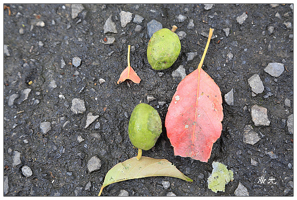青澀的橄欖掉落滿地,我這一輩的人小時候大多沒有什麼零食,青橄欖沾鹽啃食的滋味,應該是大家小時候共同的回憶,看到此地掉落滿地的青橄欖,忍不住檢起一粒啃了一口,那酸澀的記憶變得鮮明了起來。