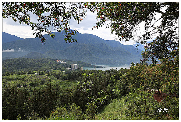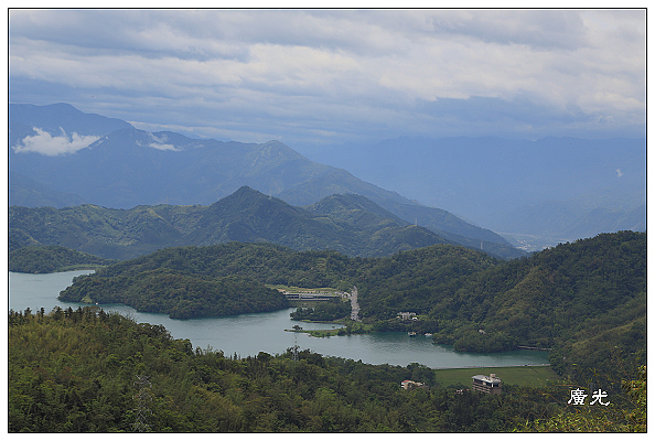 橄欖樹紅地毯大道的盡頭,是第一座觀景台,從這裡已經可以看到從埔里到日月潭的入口「九龍口」。
