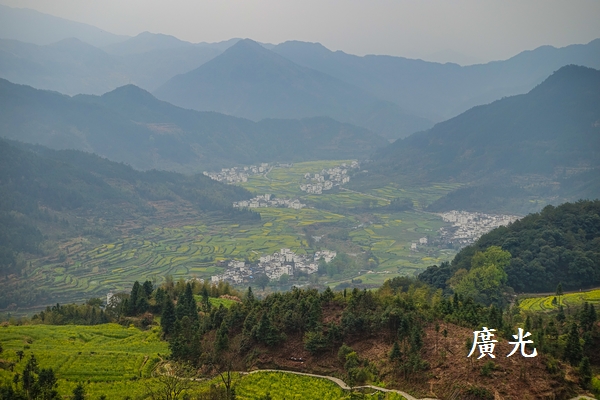當天到達婺源景區的大門購票後,因為花季山區有交通管制,所以改搭景區的大巴士上到山頂,從山頂俯瞰整個景區,雖然油菜花最盛的時節已過,但是風景仍然十分的有特色。