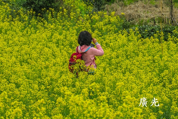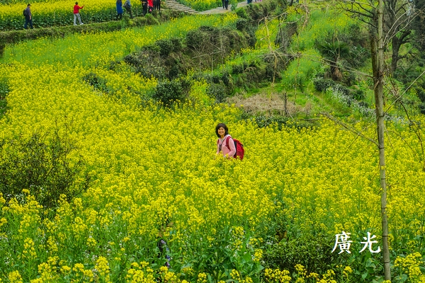 在山頂遊覽後,循著小路走進油菜花最密集的區域。