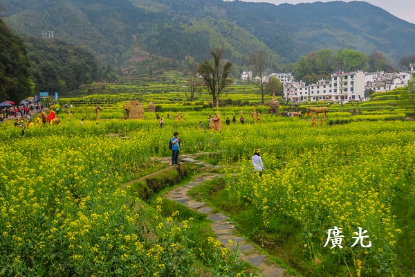 婺源被稱為「中國最美的鄉村」,因為這裡擁有許多保存良好的古村落,粉牆黛瓦、飛簷翹角,與周邊的青山綠水,構成一幅幅恬靜自如、天人合一的畫卷,而江嶺的油菜花梯田,更是婺源田園風光的代表。