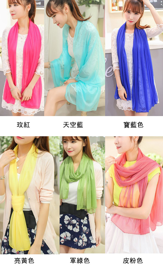 各大百貨優惠! 獨家限定的韓版經典雪紡絲巾-糖果色水晶紗圍巾
