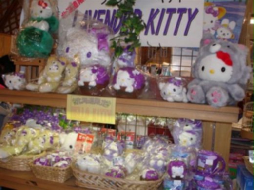首先,北海道限定版的Kitty可不只紫色Kitty喔!別忘了,北海道是以農牧業為重,水產補撈也很發達,所以除了穿著紫色毛絨絨狐狸裝的Kitty之外,還有他的姐妹版,穿著黃色毛絨絨狐狸裝的Kitty,還有薰衣草Kitty、哈密瓜Kitty、馬鈴薯Kitty、玉米Kitty、烏賊Kitty、海膽Kitty、螃蟹Kitty、鮭魚子Kitty……………