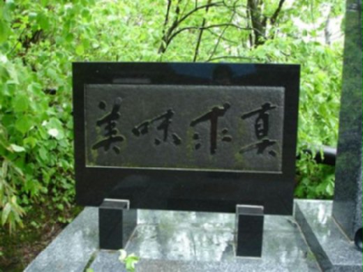 仔細看看,上面寫了魚鳥菜供養之碑,似乎除了菜刀以外,就連被宰殺拿來做成菜的生靈也一併在此被供養。而旁邊小石碑上刻著美味求真的字樣,這大概是每一個廚師畢生努力的目標吧 !