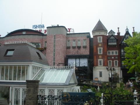 然後,遠方飄來肥皂泡泡,右手邊高樓就會有一排頭戴白色高帽的師傅起立歡迎你,領頭的是一個女生,嗚哩哇啦在講我聽不懂的日本話。我猜內容大概是在說:「歡迎各位來到白色戀人工廠,為了迎接各位,我們特定安排了歌舞表演,各位不丟錢可以,但是記得看完節目要進去買我們的巧克力餅乾喔!」